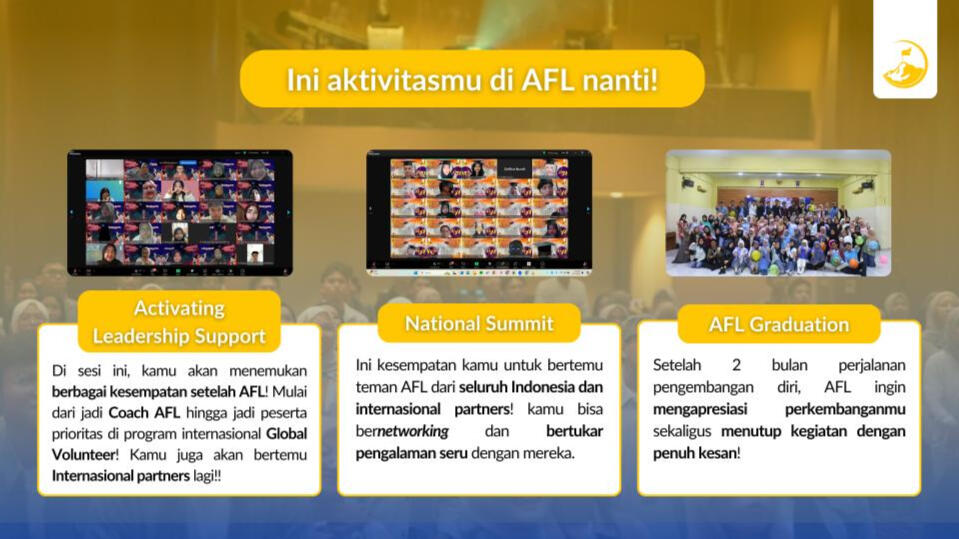 Tentu tidak, karena AFL sangat terbuka untuk kamu yang masih belajar atau bahkan baru memulai minatmu di bidang leadership!